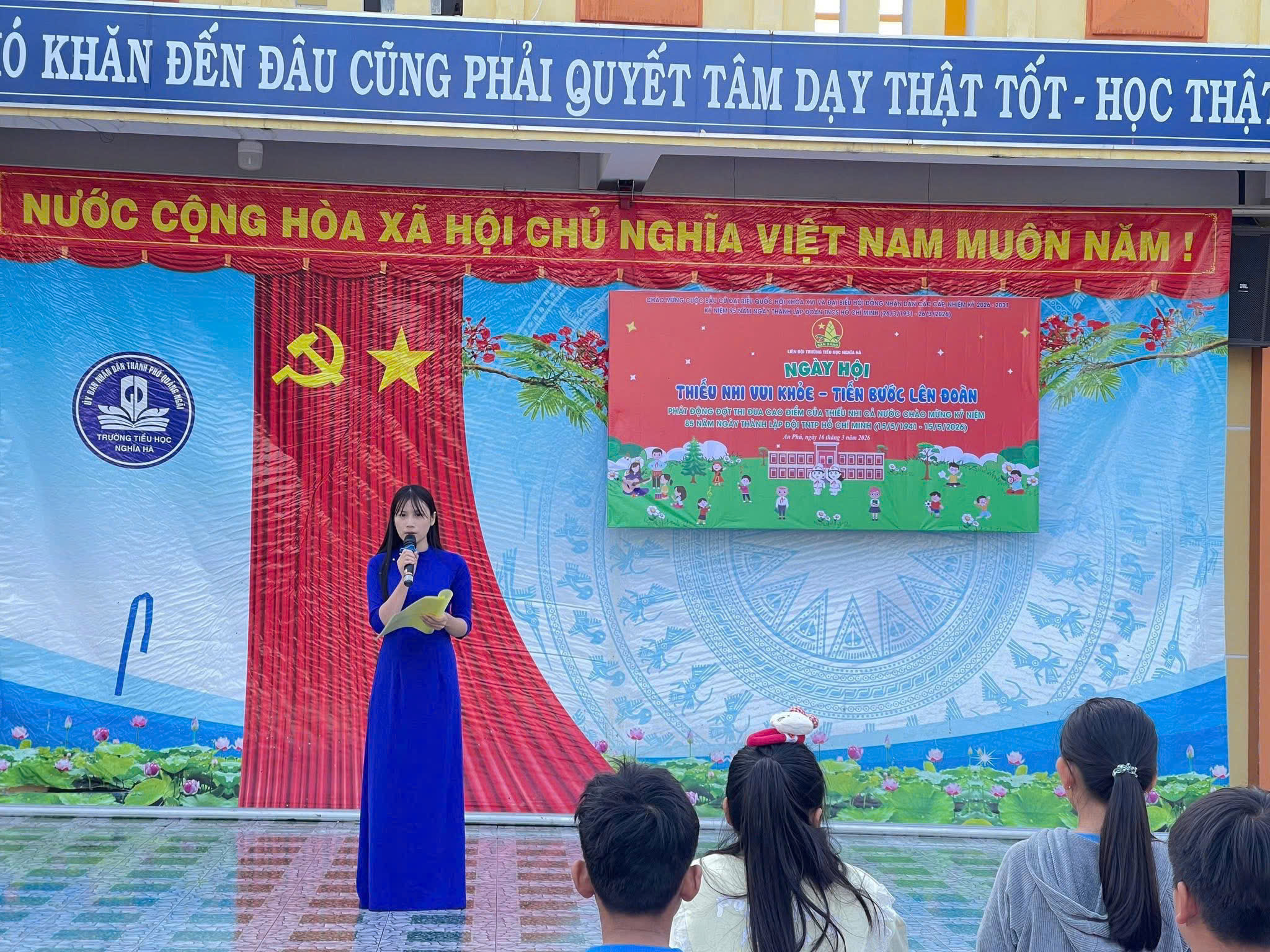 Hôm nay Ngày 16/3/2026 tại Liên đội trường TH Nghĩa Hà tổ chức Ngày hội “Thiếu nhi vui khỏe – Tiến bước lên Đoàn”. Chương trình nằm trong chuỗi hoạt động tháng Thanh niên 2026, chào mừng thành công Cuộc bầu cử đại biểu Quốc hội khóa XVI và đại biểu Hội đồng nhân dân các cấp, nhiệm kỳ 2026-2031, đồng thời hướng tới kỷ niệm 95 năm Ngày thành lập Đoàn TNCS Hồ Chí Minh (26/3/1931-26/3/2026). Phát động đợt thi đua cao điểm của thiếu nhi cả nước, hướng tới kỷ niệm 85 năm Ngày thành lập Đội TNTP Hồ Chí Minh (15/5/1941-15/5/2026).