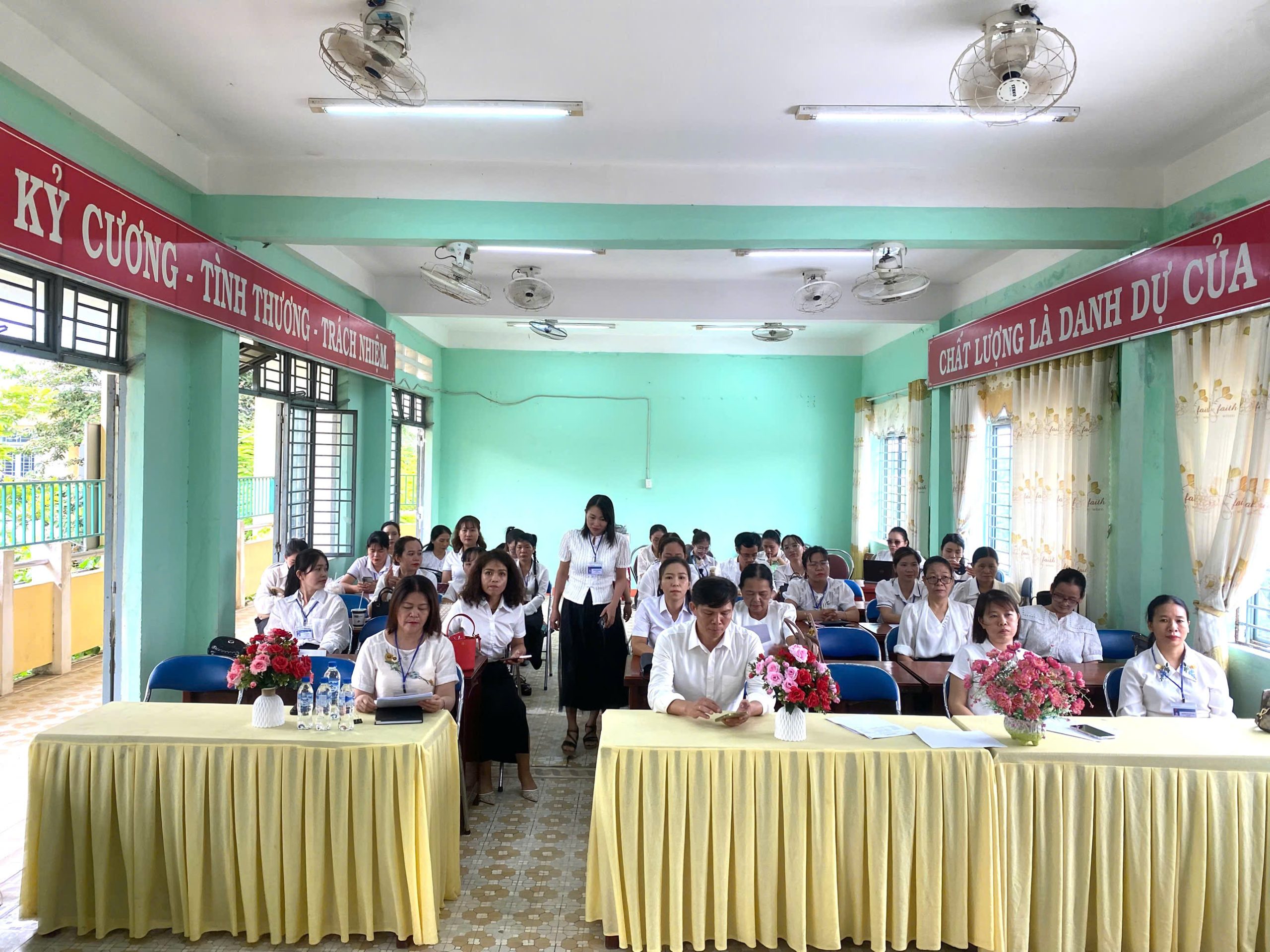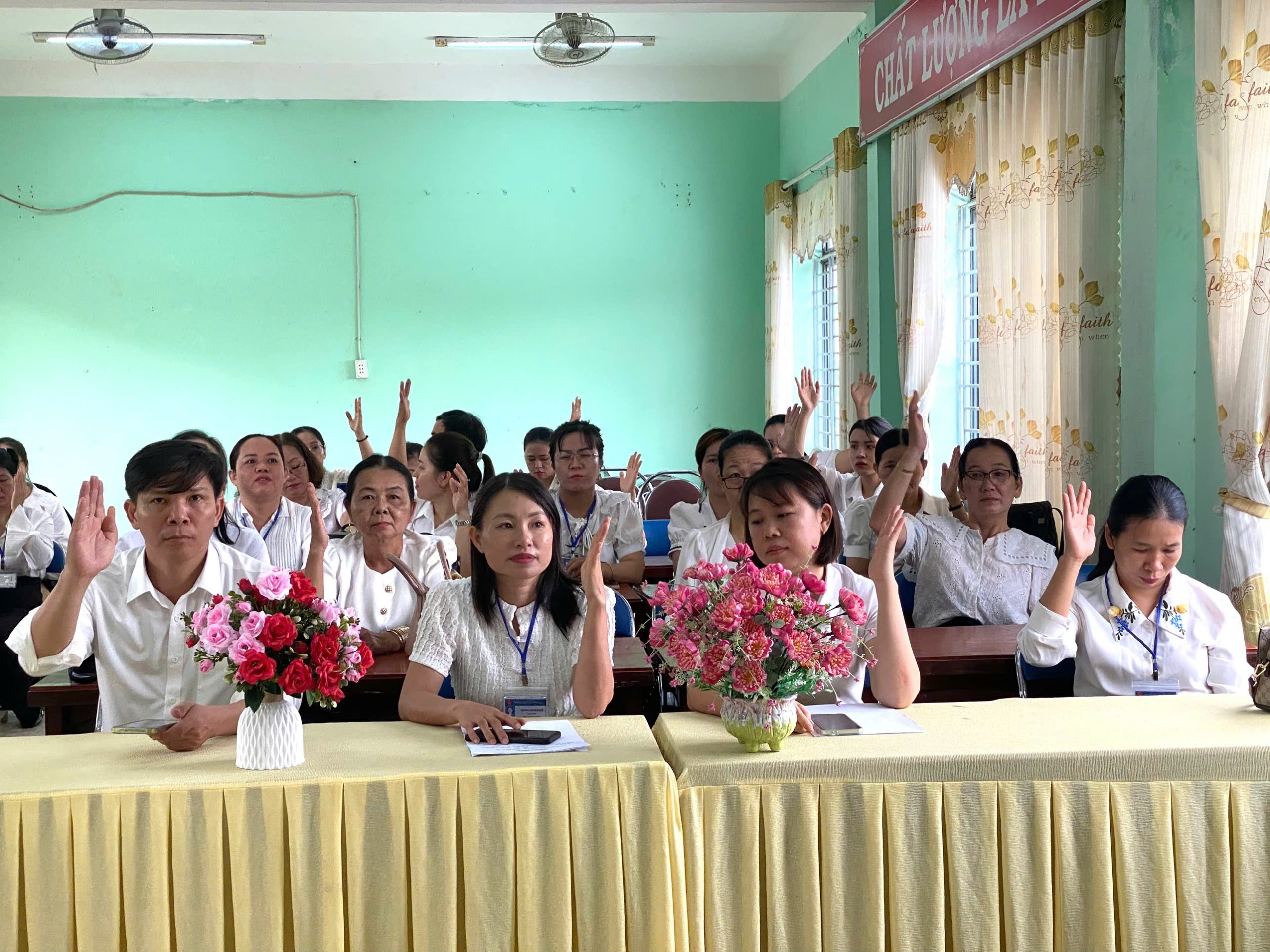 Tham dự Hội nghị có toàn thể cán bộ, viên chức trong nhà trường. Thực hiện Quy chế dân chủ cơ sở, để viên chức, người lao động được biết, tham gia ý kiến, được quyết định và giám sát những vấn đề có liên quan đến quyền, lợi ích, nghĩa vụ và trách nhiệm.